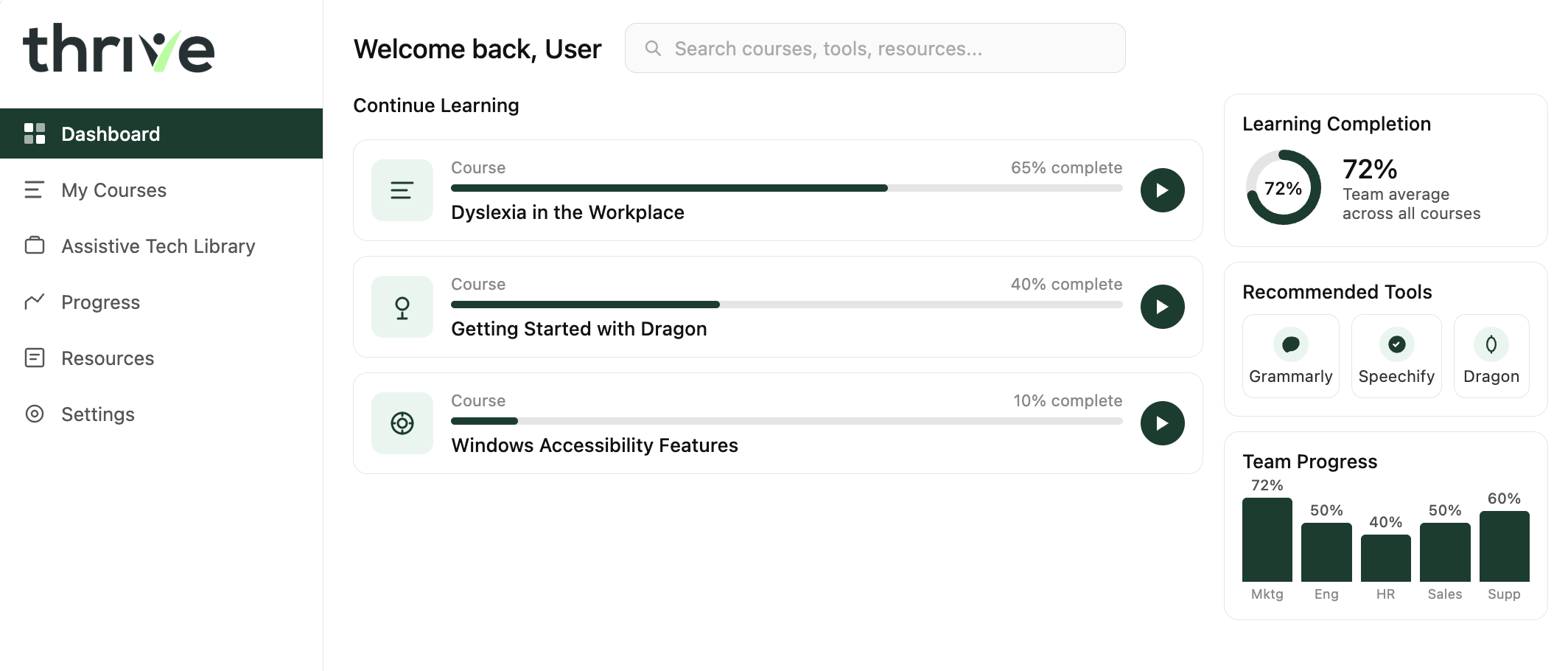 We are Thrive, an innovative e-learning platform dedicated to accessibility and workplace inclusivity. Join us to empower every employee, enhance productivity and champion a culture where diversity drives innovation.